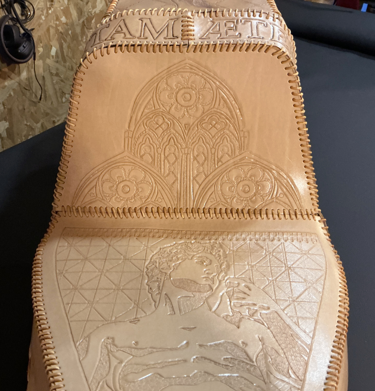 Que vous souhaitiez personnaliser un panneau de porte, une selle de moto ou tout autre objet en cuir 100% véritable, Effugii réalise votre projet de la conception du dessin à l’embosse en passant par la teinture du cuir.
